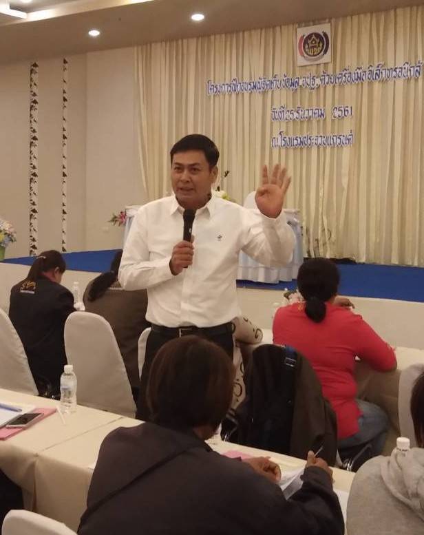 ผอ.ชัยยา ขำสะอาด ผู้อำนวยการศูนย์สารสนเทศเพื่อการพัฒนาชุมชน สนับสนุนและให้กำลังใจในการฝึกอบรมผู้จัดเก็บข้อมูล จปฐ. ด้วยเครื่องมืออิเล็กทรอนิกส์ (จ.ประจวบคีรีขันธ์) รุ่นที่ 1 จำนวน 120 คน ณ โรงแรมประจวบแกรนด์ อ.เมือง จ.ประจวบคีรีขันธ์