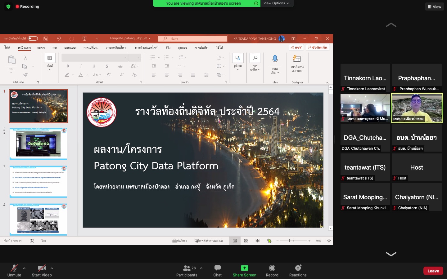 วันที่ 16-18 ส.ค.2564 ผู้อำนวยการศูนย์สารสนเทศเพื่อการพัฒนาชุมชน มอบหมายให้ นางสาวประภาพรรณ วุ่นสุข รักษาการผู้อำนวยการกลุ่มงานวิเคราะห์ข้อมูลสารสนเทศชุมชน ร่วมเป็นกรรมการพิจารณารางวัลท้องถิ่นดิจิทัล ภายใต้โครงการของสำนักงานพัฒนารัฐบาลดิจิทัล (สพร.) ซึ่งมีหน่วยงานระดับท้องถิ่น จำนวน 44 หน่วยงาน ส่ง 45 ผลงานด้านการพัฒนาองค์กรและบริการด้วยดิจิทัลเข้าประกวด การนำเสนอผลงานและพิจารณารางวัลได้ดำเนินการ ผ่านโปรแกรม zoom cloud meeting