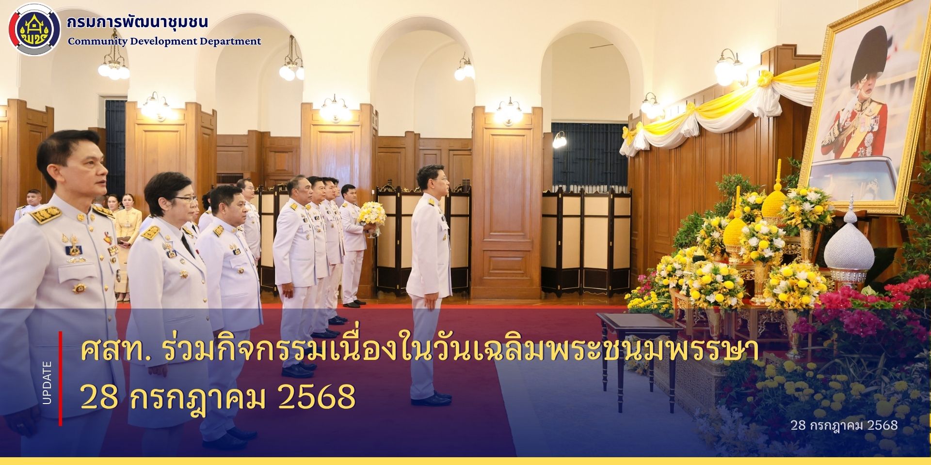 วันที่ 28 กรกฎาคม 2568 เวลา 08.00 น. นายอาทร พิมชะนก ผู้อำนวยการศูนย์สารสนเทศเพื่อการพัฒนาชุมชน ร่วมกิจกรรมเนื่องในโอกาสวันเฉลิมพระชนมพรรษา พระบาทสมเด็จพระเจ้าอยู่หัว 28 กรกฎาคม 2568 โดยมีนายสยาม ศิริมงคล อธิบดีกรมการพัฒนาชุมชน นำทีมคณะผู้บริหารกรมการพัฒนาชุมชน ร่วมพิธีถวายสัตย์ปฏิญาณเพื่อเป็นข้าราชการที่ดีและพลังของแผ่นดินฯ ณ ท้องสนามหลวง และร่วมถวายแจกันดอกไม้และลงนามถวายพระพรชัยมงคล ณ ศาลาสหทัยสมาคมในพระบรมมหาราชวัง เพื่อแสดงความจงรักภักดีและสำนึกในพระมหากรุณาธิคุณอันหาที่สุดมิได้