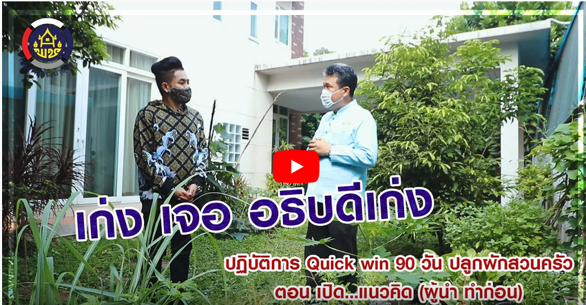 ปฏิบัติการ Quick win 90 วัน ปลูกผักสวนครัว เพื่อความมั่นคงด้านอาหาร กับเก่ง ธชย ประทุมวรรณ และท่านสุทธิพงษ์ จุลเจริญ อธิบดีกรมการพัฒนาชุมชน ที่ให้เกียรติเปิดบ้านพัก แสดงทัศนะ “ผู้นำ ต้องทำก่อน”