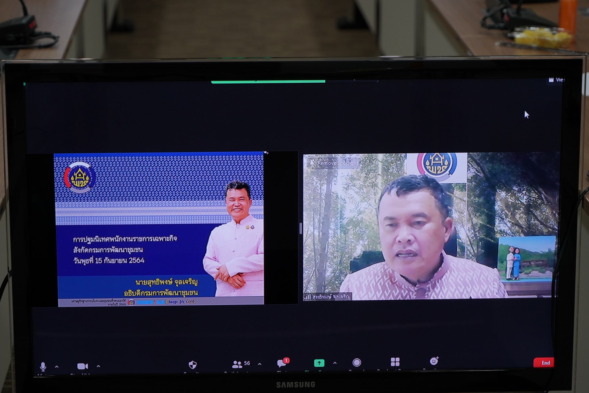 วันที่ 15 กันยายน 2564 นายสุทธิพงษ์ จุลเจริญ อธิบดีกรมการพัฒนาชุมชน กระทรวงมหาดไทย เป็นประธานในการปฐมนิเทศและให้โอวาทแก่พนักงานราชการเฉพาะกิจ ตำแหน่งนักพัฒนาชุมชน จำนวน 406 คน ผ่านระบบ Zoom Cloud Meeting โดยมีผู้อำนวยการกองการเจ้าหน้าที่ ผู้อำนวยการสำนักเสริมสร้างความเข้มแข็งชุมชน และเจ้าหน้าที่ที่เกี่ยวข้อง เข้าร่วมประชุม ณ ห้องประชุม 5001 ชั้น 5 กรมการพัฒนาชุมชน