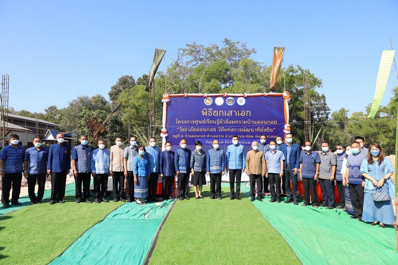 วันที่ 15 ธันวาคม 2564 เวลา 09.00 น. นายสมคิด จันทมฤก อธิบดีกรมการพัฒนาชุมชน เป็นประธานพิธียกเสาเอกศูนย์เรียนรู้ผ้าย้อมครามบ้านดอนกอย “วิชชาลัยดอนกอย วิถีแห่งการพัฒนาที่ยั่งยืน” โดยมี นางจุรีรัตน์ เทพอาสน์ ผู้ว่าราชการจังหวัดสกลนคร นายวิฑูรย์ นวลนุกูล รองผู้ว่าราชการจังหวัดสกลนคร นายนิวัติ น้อยผาง นายสุรศักดิ์ อักษรกุล รองอธิบดีกรมการพัฒนา ชุมชน คณะผู้บริหารกรมการพัฒนาชุมชน นายสมาน พั่วโพธิ์ พัฒนาการจังหวัดสกลนคร หัวหน้าส่วนราชการจังหวัด เจ้าหน้าที่พัฒนาชุมชน และสมาชิกกลุ่มทอผ้าบ้านดอนกอย เข้าร่วมในพิธี
